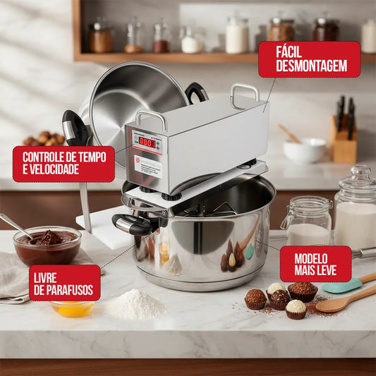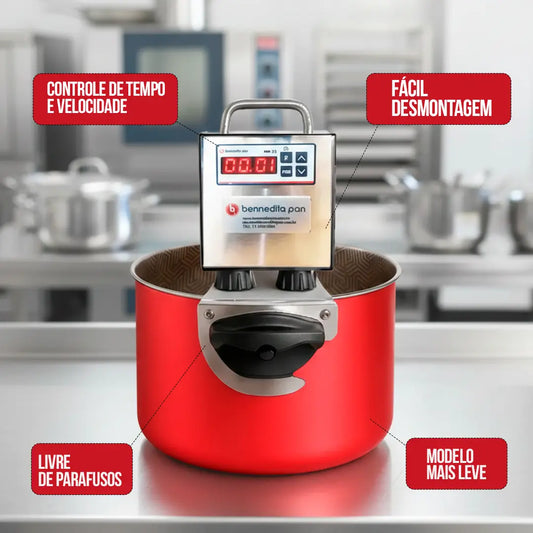A limpeza é simples. Basta deixar esfriar, remover o misturador e lavar com uma esponja macia, sabão neutro e água morna. Evite usar produtos abrasivos.