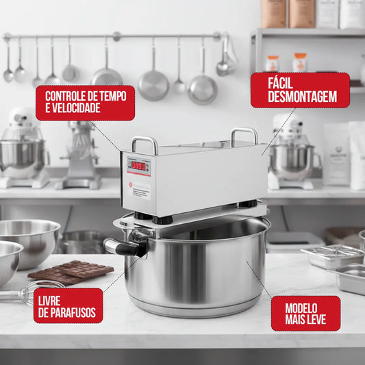 Nossas panelas foram especialmente projetadas para a produção em larga escala de doces e misturas quentes. Elas possuem controle de temperatura, estrutura reforçada e a opção de usar acessórios como misturadores automáticos.