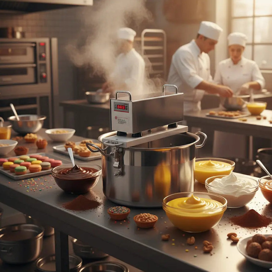 Perfeito para doces, recheios, cremes e molhos. Produção rápida, sem queimar e textura consistente em cada lote com o mínimo de esforço.